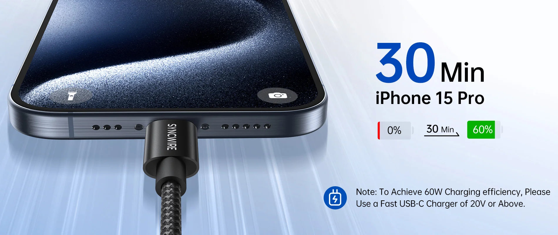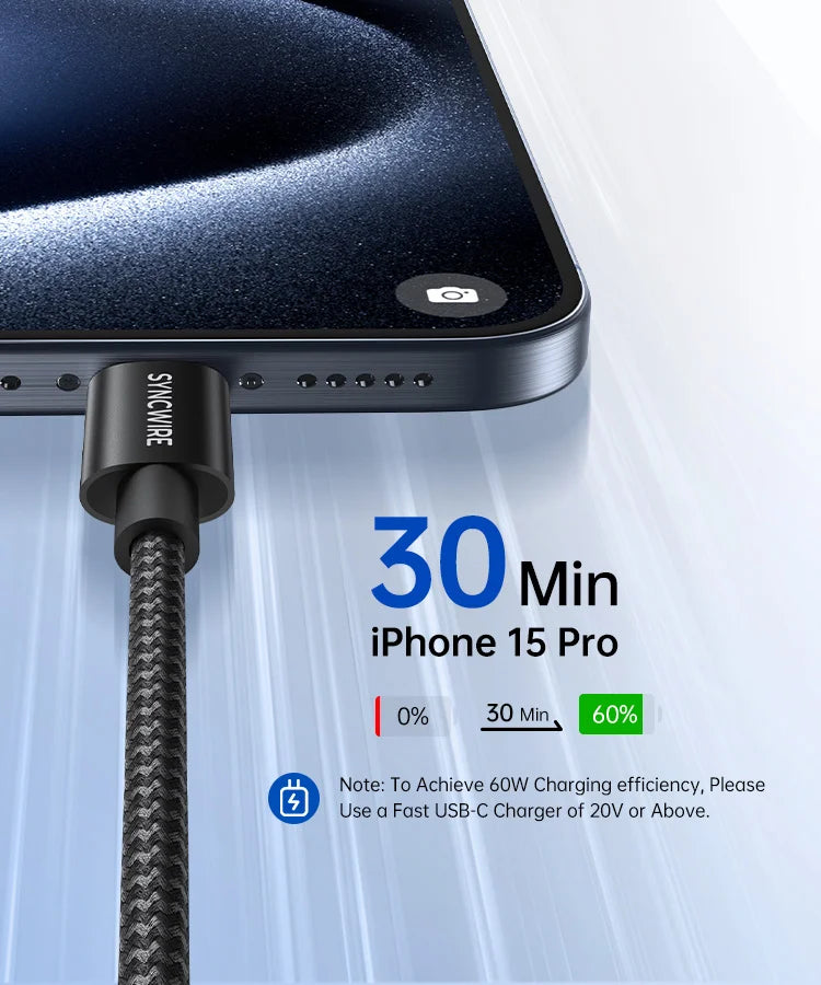 • Fast Charging & Data Sync: Enjoy quick charging with PD3.0, QC3.0, and QC4.0 support, offering up to 60W power delivery and fast data transfer speeds of 480Mbps. Charge your iPhone 15 Pro to 60% in just 30 minutes with a compatible 35W Apple charger.