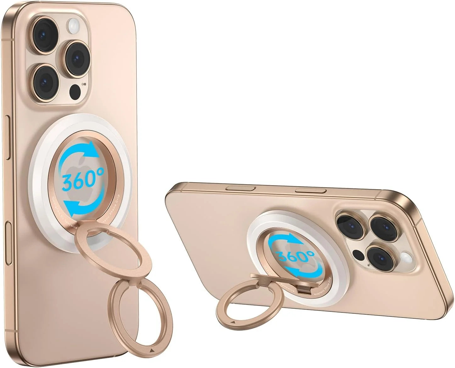 Por otro lado, el Magnetic DuoGrip, un soporte de doble anillo, ofrece una rotación de 360° fuera del anillo, centrándose en el ajuste del ángulo básico.
