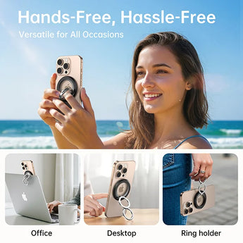 • Utilizzo versatile: Il supporto magnetico ad anello per telefono si fissa ai tavolini, consentendo l'intrattenimento a mani libere durante i viaggi in aereo e in treno, con un attacco MagSafe facile da usare per la rotazione e la rimozione.
