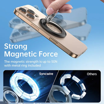 • Potente forza magnetica: Dotato di magneti N52 per una presa sicura, in grado di sostenere 1-1,2 kg e fino a 2,5 kg con un anello metallico aggiuntivo, garantendo stabilità al dispositivo.